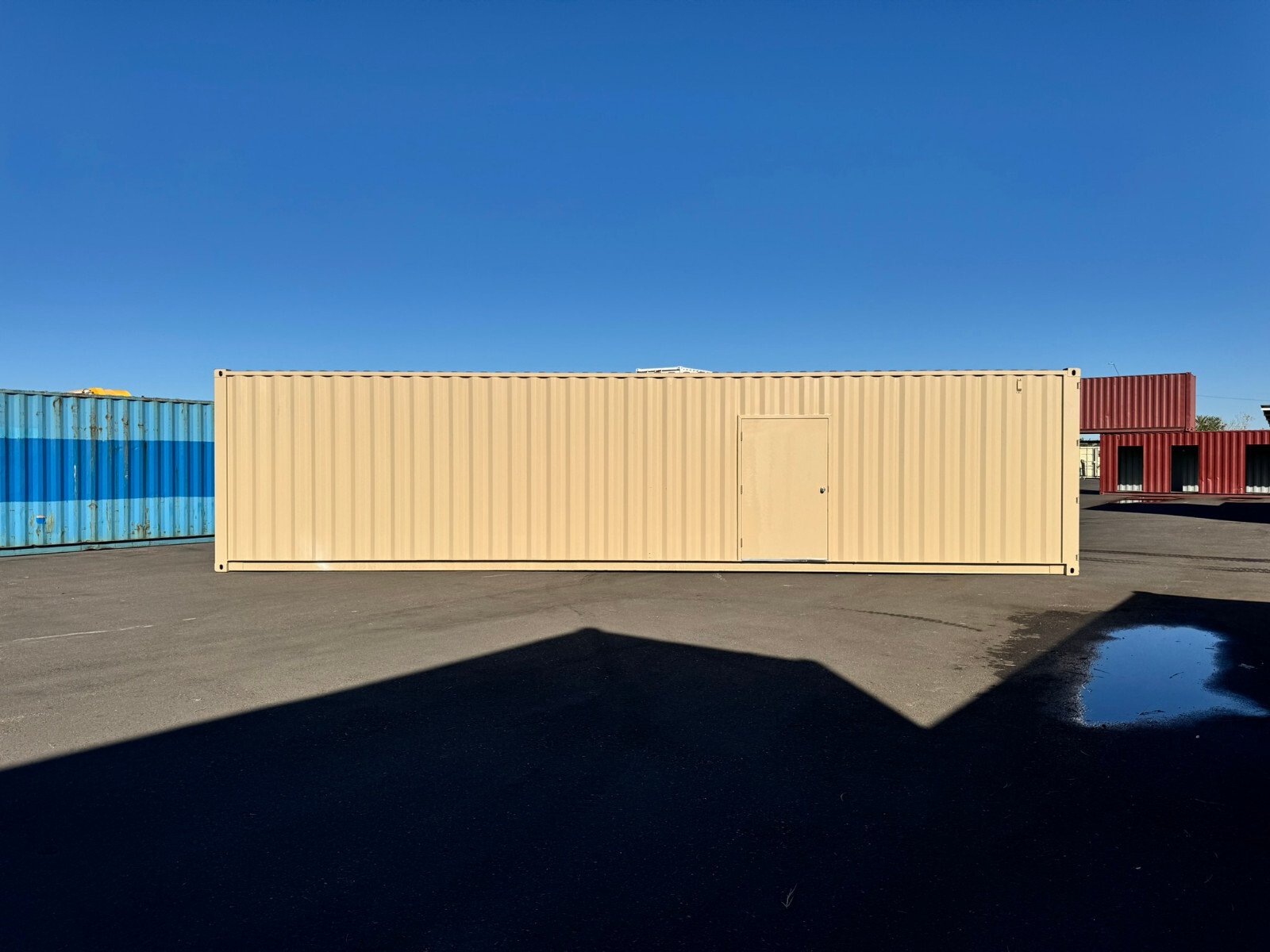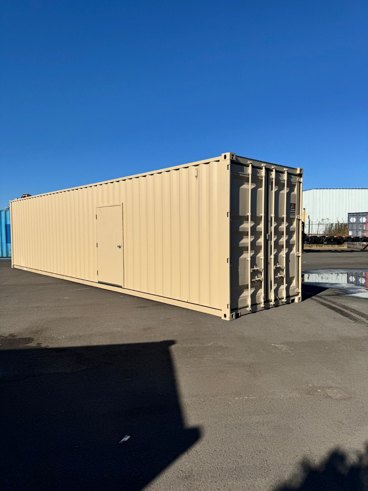 Experience the convenience of portable storage with our 40ft shipping container featuring a man door. Ideal for both commercial and residential use, this container offers ample space for your storage needs, whether it’s for business inventory or personal belongings. The inclusion of a man door allows for easy access and control over your items, ensuring they are secure and within reach.