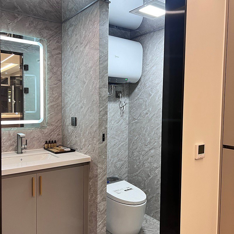 2)intelligent cosmetic mirror,finish wash basin,shower area storage rack